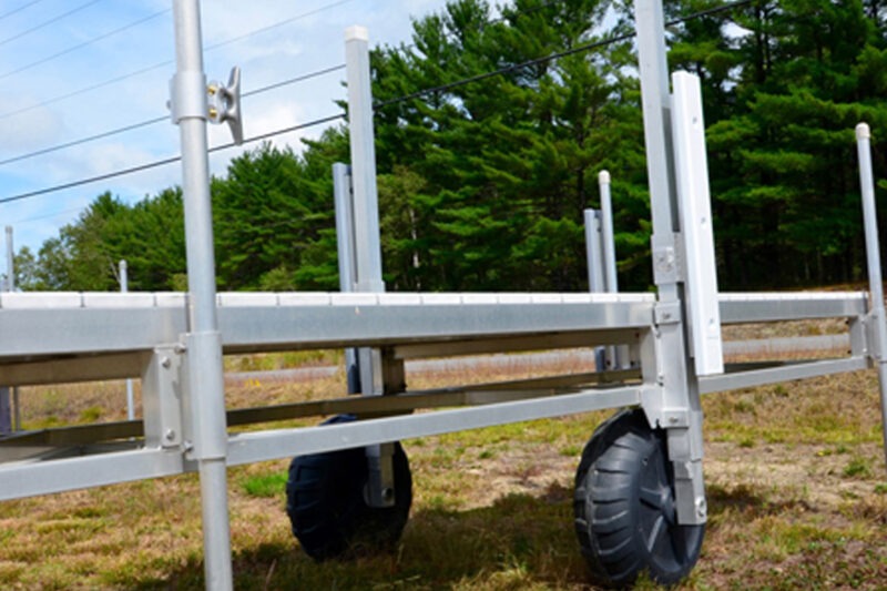 Our rugged, flexible wheel configurations allow your dock to move effortlessly across sand, grass, gravel, and uneven terrain. Whether you have a private lakefront or a commercial waterfront, our rolling docks glide smoothly into place.
